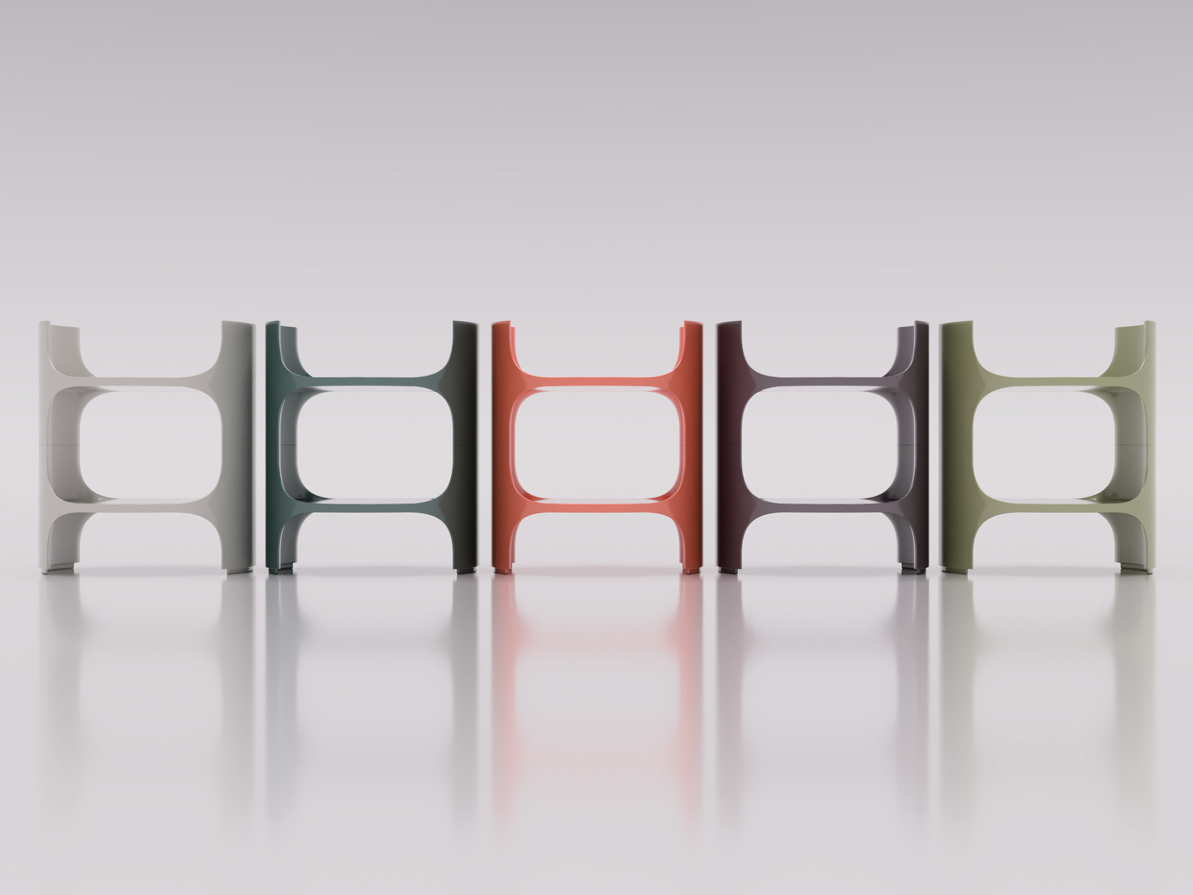 The chair series "CHAIR" is an exploration of typography combined with comfortable chairs designed for residential spaces. The material fusion of wood and fiberglass is durable and resilient, suitable for both indoor and outdoor environments. Wood, a warmly inviting material, contributes to the coziness essential for lounge furniture, complemented by the moderately deep seating area. The transparent fiberglass seat shell (white in the model) introduces an unconventional and modern aesthetic, enhanced by the typography incorporated into the armrests. The lettering consists of strict, straight lines paired with graceful, curved arcs, collectively crafting a stylish and relaxed design language. The typography's design is also rooted in its functional aspect: stability. The goal was to maintain letter legibility while simultaneously creating a range of practical chairs.